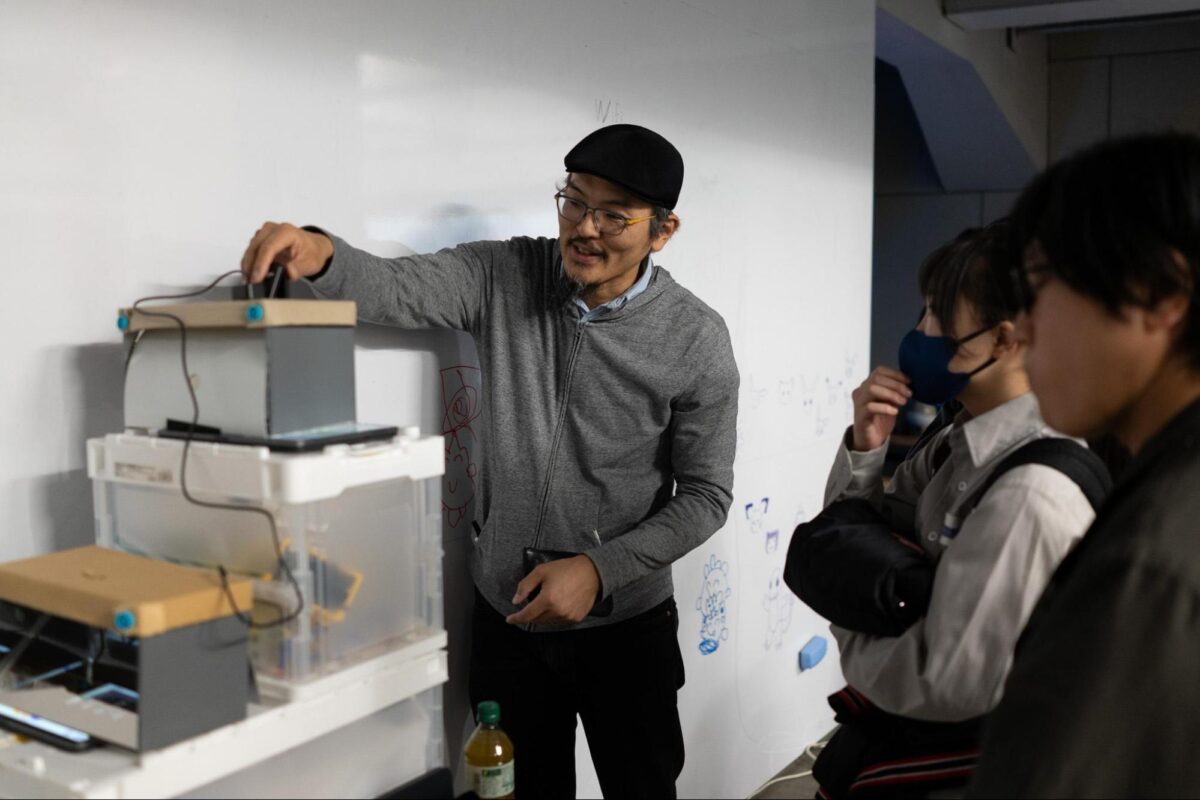 本イベントの講演者として、東京理科大学の佐々木智也氏と、アブストラクトエンジンの竹森達也氏が登壇し、それぞれの活動におけるプロトタイピングや展示についての事例や考え方についてご講演された。